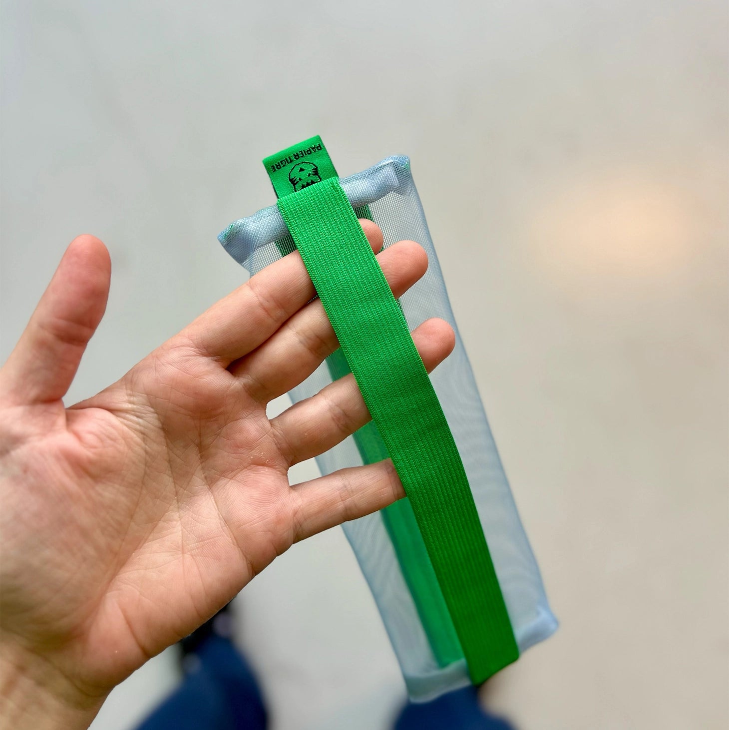 This super handy pencil case is made from tough mesh to keep your bits safe, whilst being see through so you always know what you've got to hand. It also has an elastic strap along the back so that you can attach it to the cover of your notebook.