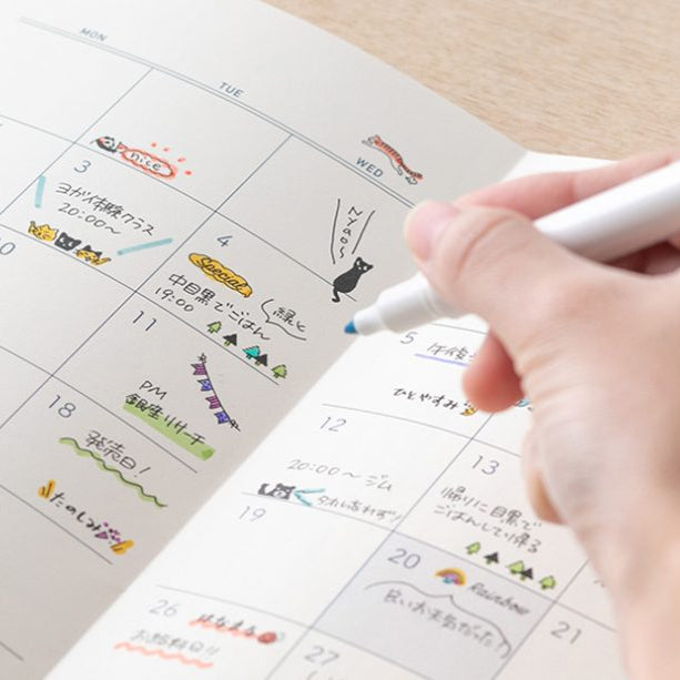 Available in the following designs: Animal Speech Bubble, Cats, Days of the Week and Weather, New Daily Life, Daily Life Record, Motif Speech Bubble, and 12 Months.